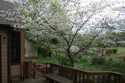 Clematis, dogwood and roses in bloom