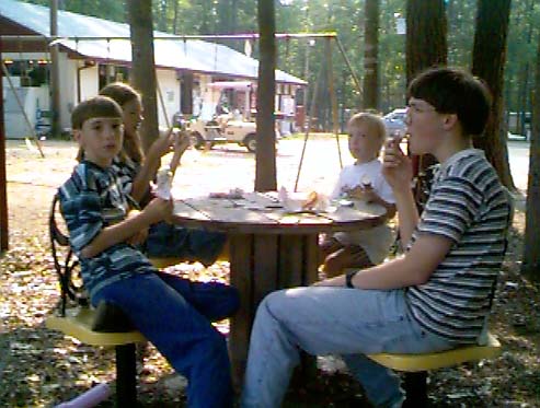 After I picked up Emma from Tuckahoe Montessori, we went home and packed the camping stuff, then when Luke got home at 2:30, we went and picked up Molly at Moody, then Jacob at Highland Springs. When we got to Pocahantas park, however, we found out that the campground was closed for renovation, so we went to the Amelia Campground, that's not nearly as nice.
