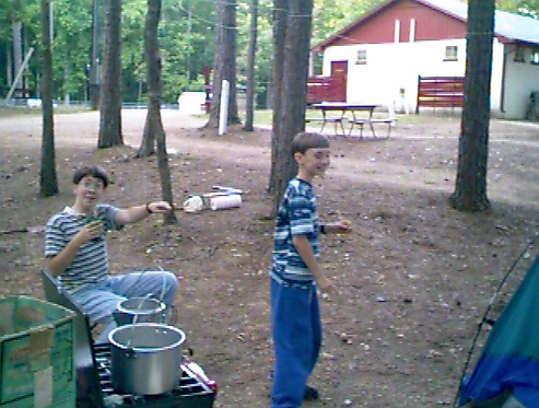 Afterwards we made a fire and cooked dinner. We cooked biscuits and cornbread on sticks over the fire and had beef stew and spaghetti.
